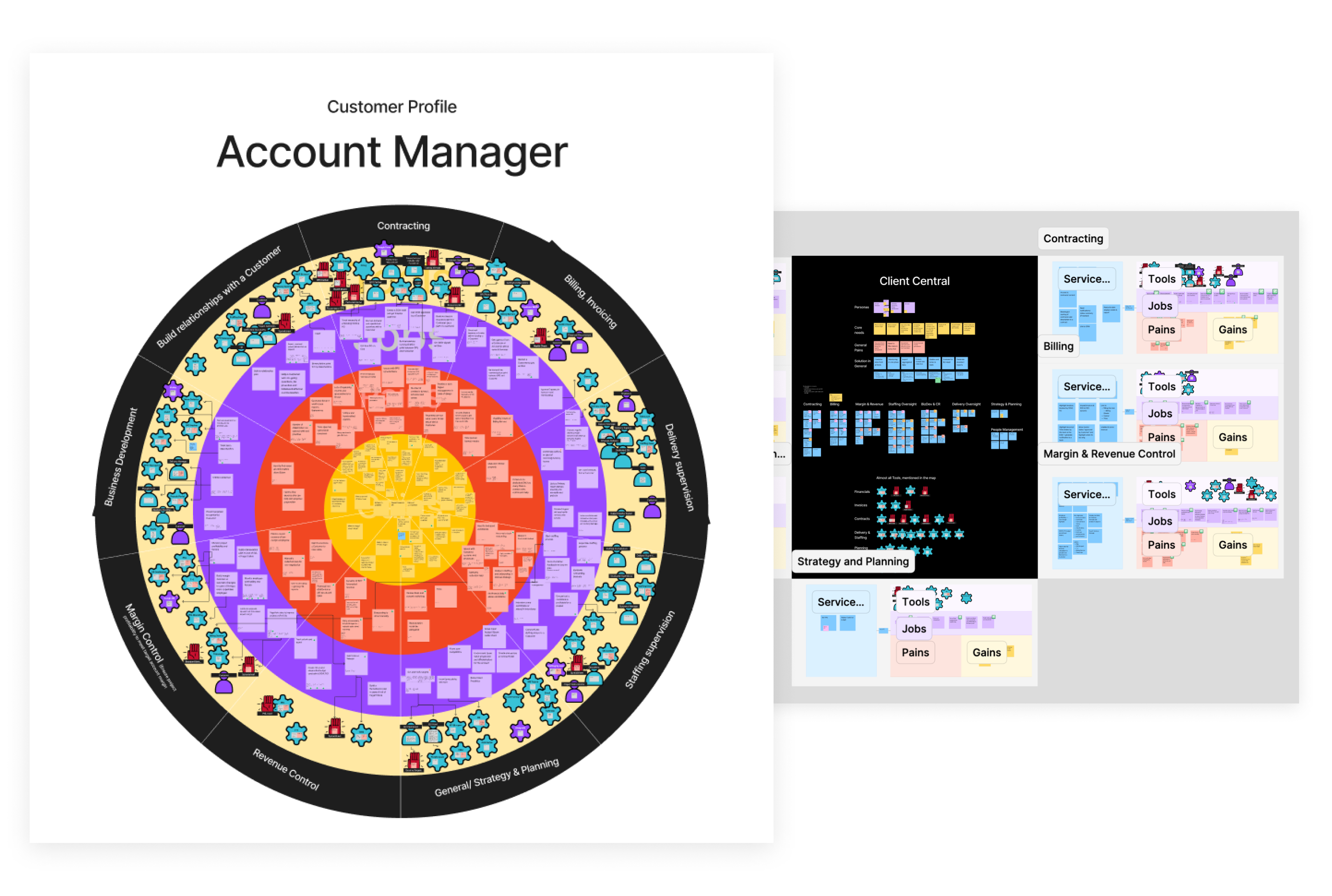To support this direction, I created a Value Proposition Map, breaking the account manager’s work into: